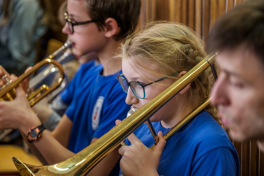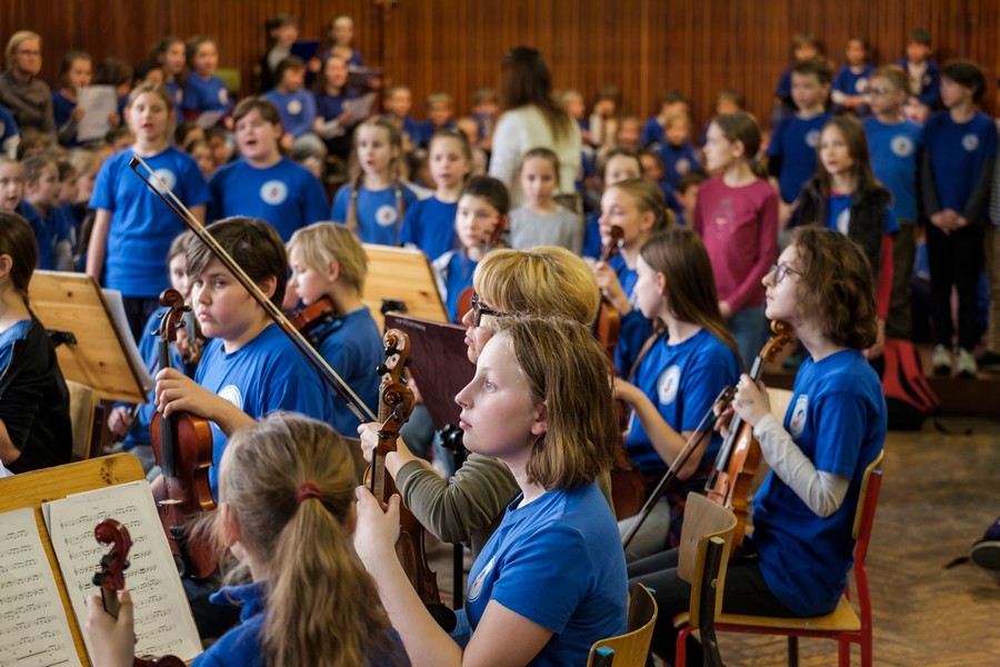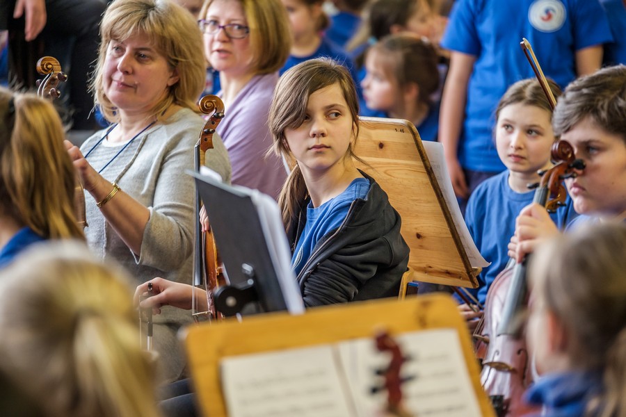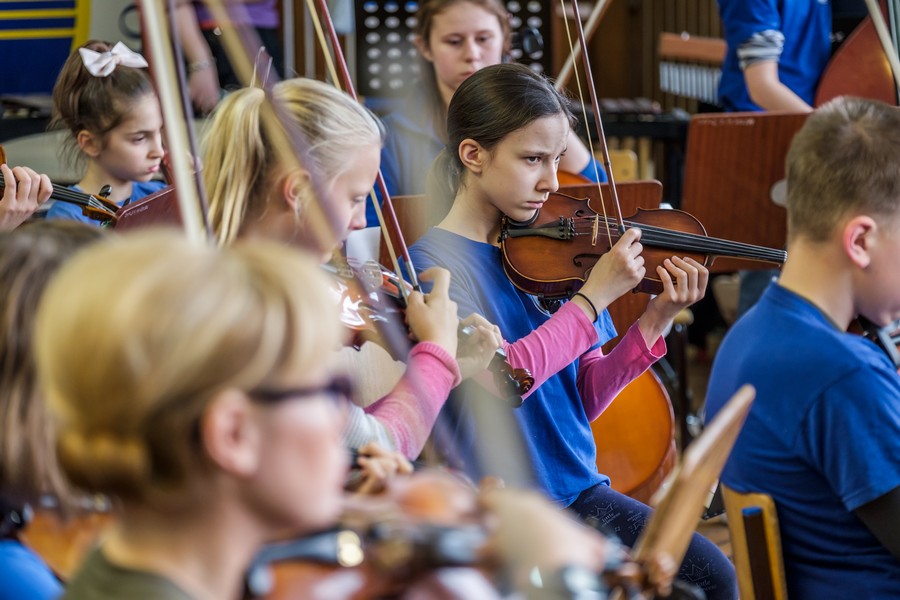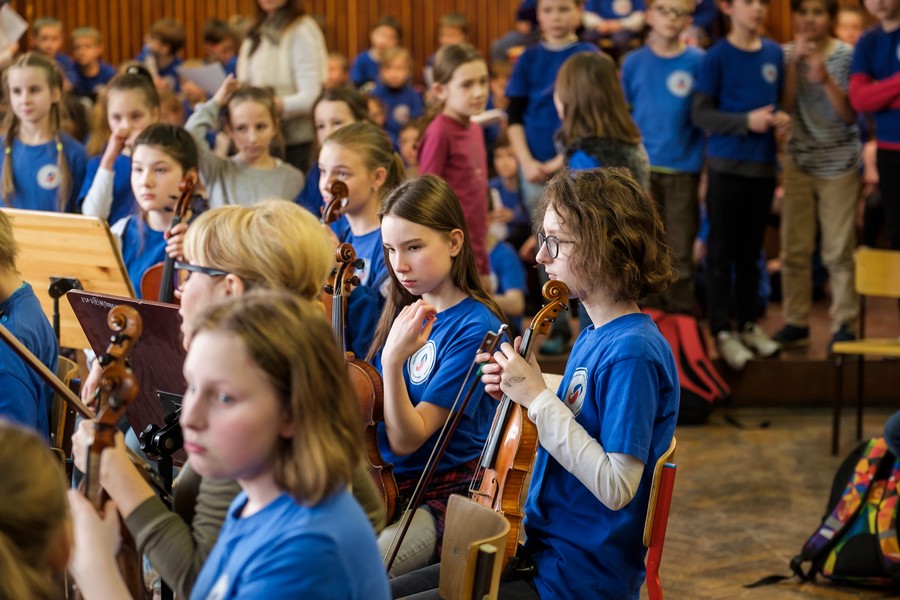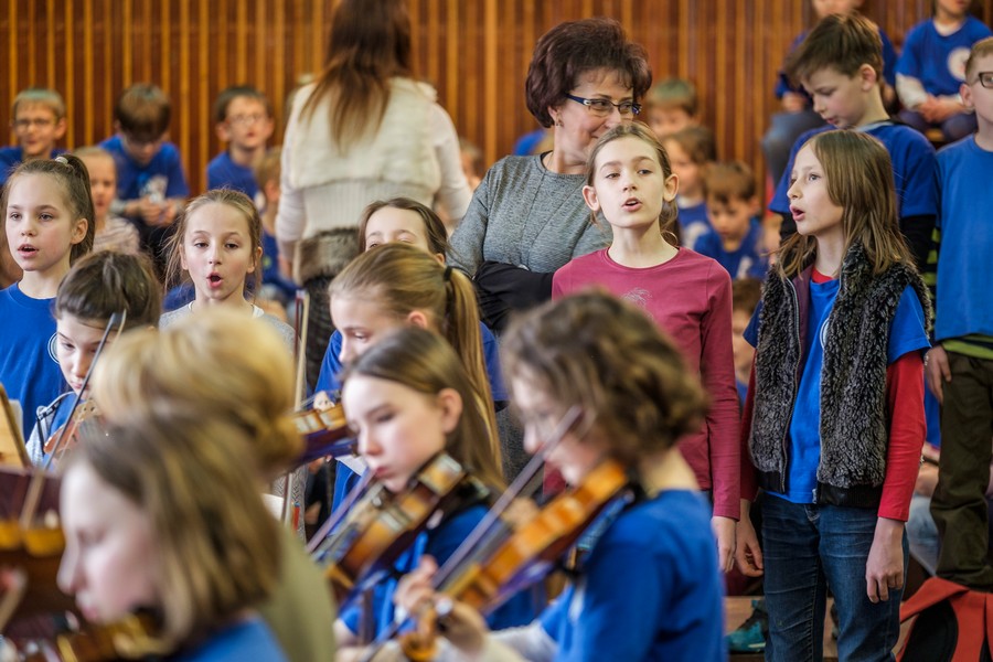 – Owszem, spędziłem tu dużą część dzieciństwa, uczyłem się grać na instrumentach, brałem udział w pierwszych próbach, śpiewałem w dziecięcym chórze Belcanto i już jako dziecko wyjeżdżałem na koncerty, nie przypuszczając nawet, że będzie to w przyszłości mój sposób na życie. Dobrze wspominam tę szkołę, mieści się w niesamowitym i tajemniczym przedwojennym gmachu Pestalozzi – Schule. Właściwie uważam ten kwartał, usytuowany między ulicami: Bolesława Śmiałego, Jagiellońską, Ściegiennego i aleją Piastów, za niezaprzeczalny skarb szczecińskiej architektury. Mam w zwyczaju pokazywać go swoim przyjaciołom z innych miast, nawet podczas krótkich wizyt w Szczecinie. Mówię wtedy z dumą: a tu moja podstawówka. Tym razem znowu jestem tu w sprawach muzycznych. Na prośbę władz szkoły przygotowałem aranżację na chór i orkiestrę symfoniczną kompozycji patrona szkoły pana Marka Jasińskiego pt. „Jarzynowy teatrzyk”. Jest to pieśń dedykowana dzieciom i mimo swojej dość smutnej, nostalgicznej melodii, ma w sobie mnóstwo uroku. Nowy śliczny tekst został napisany przez panią Joannę Celencewicz-Dąbkowską.