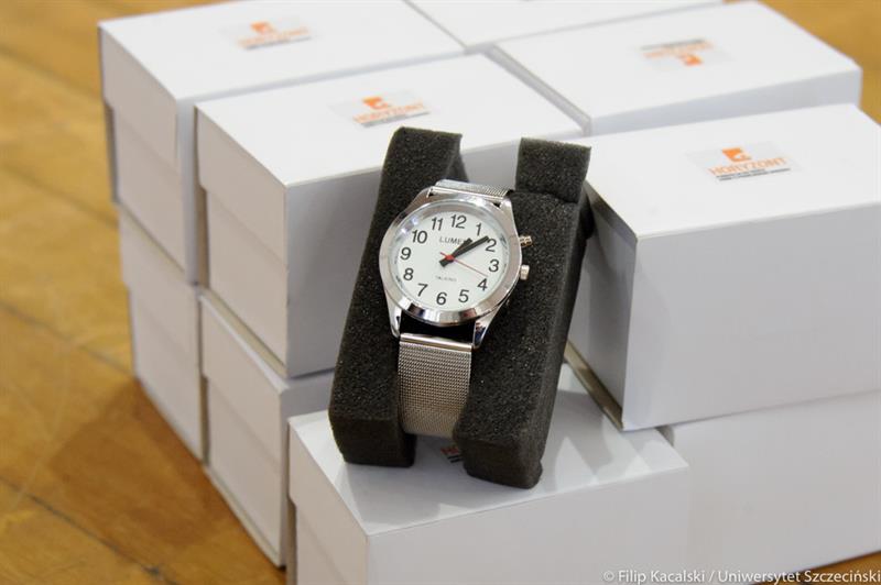 Specjalne mówiące zegarki otrzymali niewidomi zrzeszeni w zachodniopomorskim okręgu Polskiego Związku Niewidomych. Uroczystość odbyła się w siedzibie Wydziału Matematyczno-Fizycznego Uniwersytetu Szczecińskiego. Sprzęt zakupiono dzięki środkom Fundacji na Rzecz Zapobiegania Ślepocie i Niedowidzeniu oraz wkładowi własnemu Fundacji Horyzont.