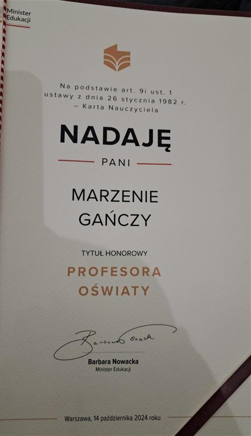 W tym roku tytuł honorowy profesora oświaty otrzymało 25 osób z całej Polski, w tym dwie nauczycielki z województwa zachodniopomorskiego: Małgorzata Roszak ze Szkoły Podstawowej nr 48 w Szczecinie oraz Marzena Gańcza - dyrektor Zespołu Szkół Morskich im. Eugeniusza Kwiatkowskiego w Świnoujściu.