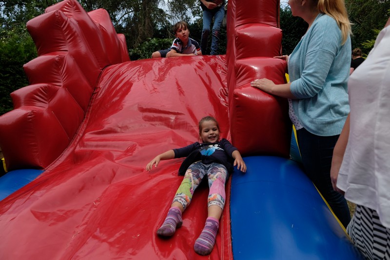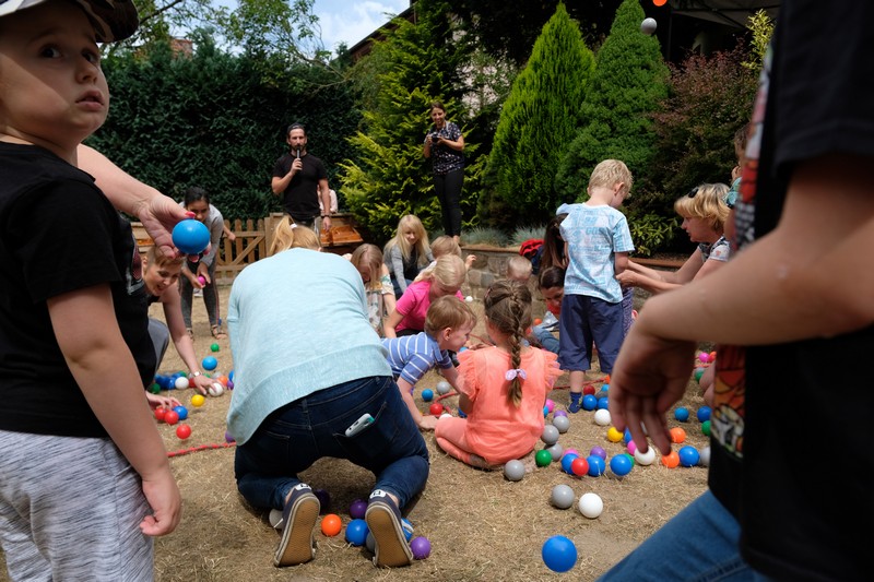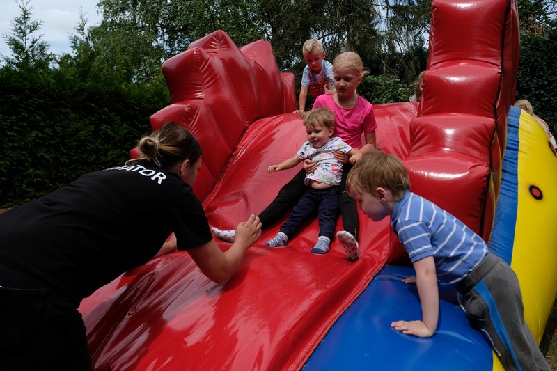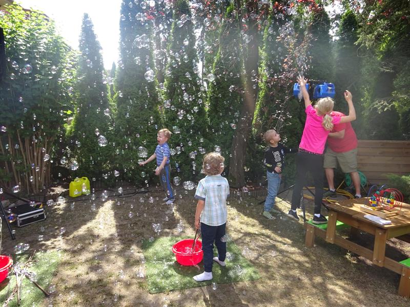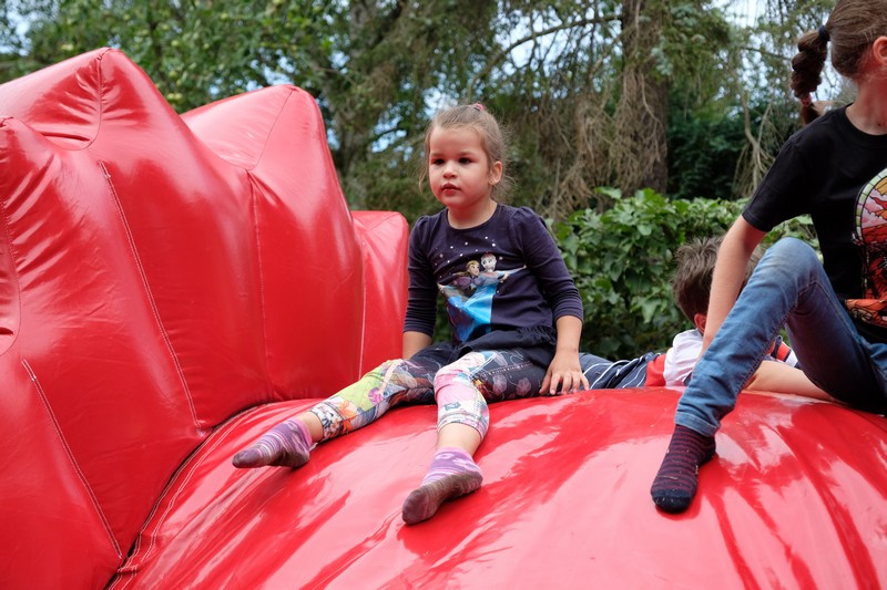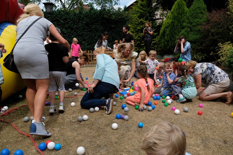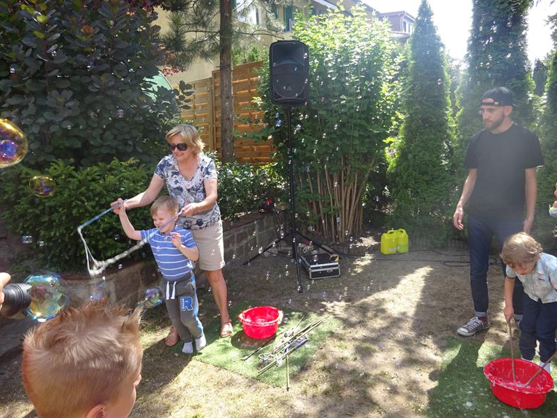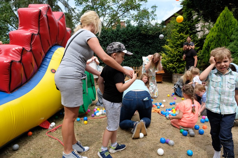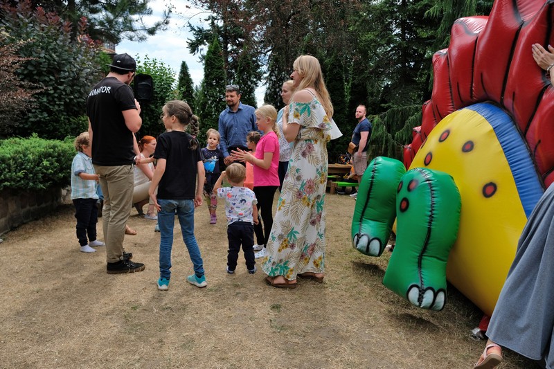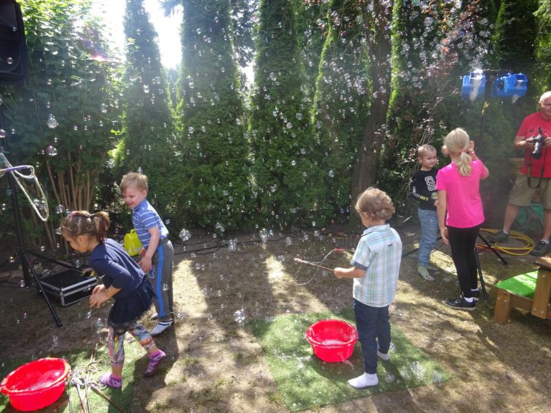Z okazji sobotniego (7 lipca) festynu stanęła dmuchana zjeżdżalnia, a ogród zapełnił się grami edukacyjnymi. Pogoda dopisała - sielankowy nastrój dopełniły ogromne bańki mydlane, robione przez wychowanków przy niewielkiej pomocy animatorów.