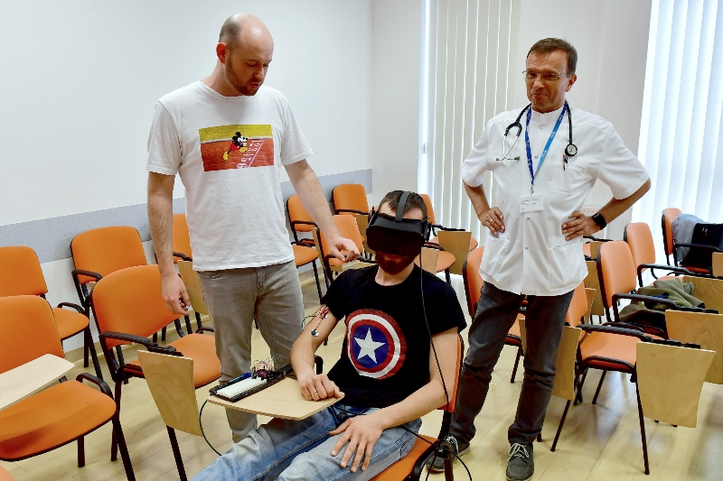 - Kluczowym elementem całego systemu jest to, żeby sprowokować pacjenta do wykonywania ruchów, co może wpływać na niego pozytywnie - powiedział Radosław Nagay z firmy VRR, która wraz z Pomorskim Uniwersytetem Medycznym w Szczecinie chce udostępnić urządzenie pacjentom poddawanym hemodializie w szczecińskim szpitalu klinicznym nr 2. Według zamierzenia twórców projektu, wirtualna rzeczywistość ma nie tylko poprawić komfort pacjentów podczas zabiegu i "odciąć" ich od szpitalnego otoczenia, ale też wpłynąć na efektywność dializ.