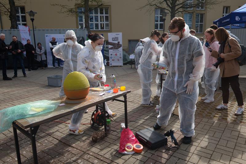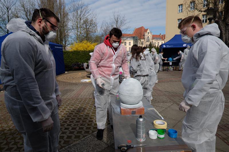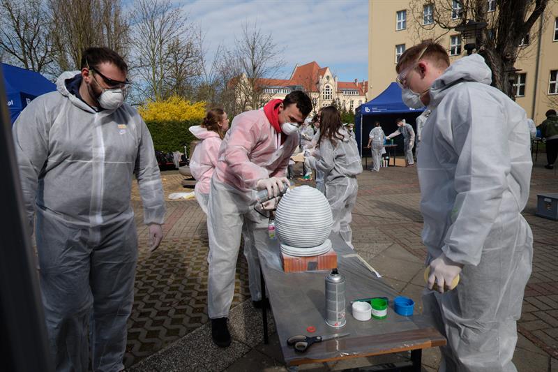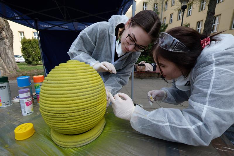 Betonowe pisanki zostały wydrukowane na miejscu, przy udziale specjalistów z obu wydziałów.