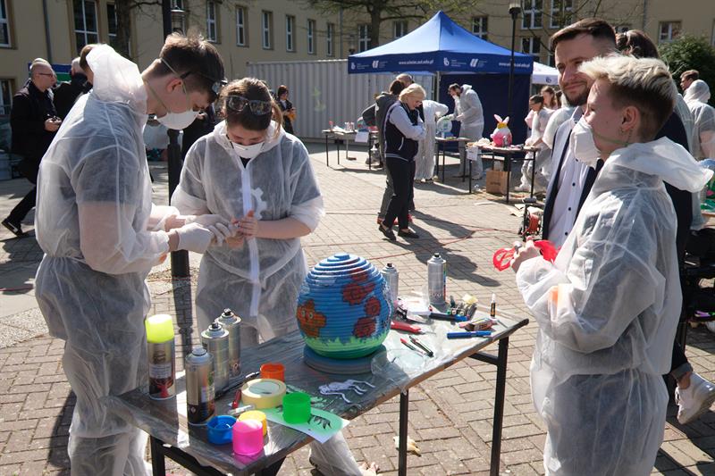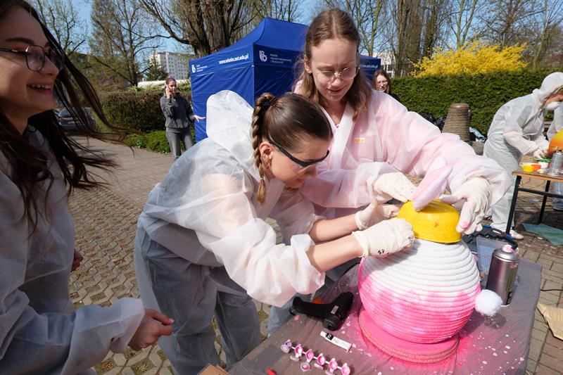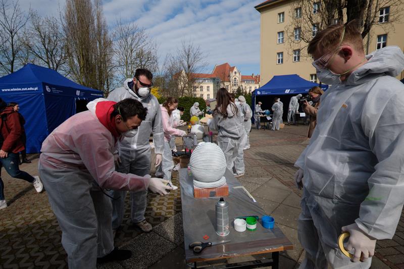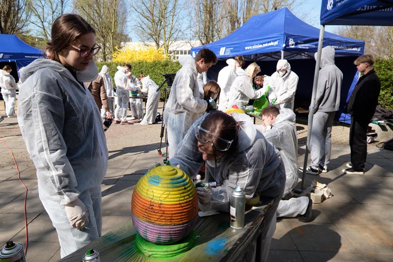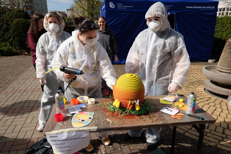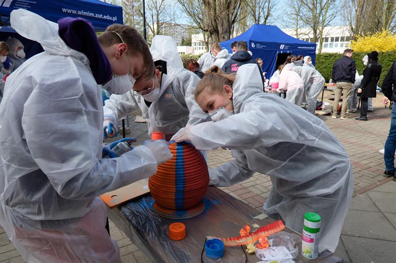 Międzywydziałowy Konkurs Studenckich Kół Naukowych w malowaniu betonowych pisanek zgromadził w środę dziesięć drużyn z Wydziału Budownictwa i Inżynierii Środowiska oraz Wydziału Inżynierii Mechanicznej i Mechatroniki Zachodniopomorskiego Uniwersytetu Technologicznego w Szczecinie. Uczestnicy mieli za zadanie ozdobić wydrukowane w technologii 3D betonowe jajka, łącząc precyzję z artystycznym podejściem i wiosenną tematyką.