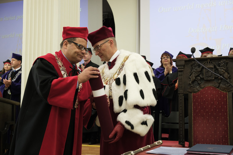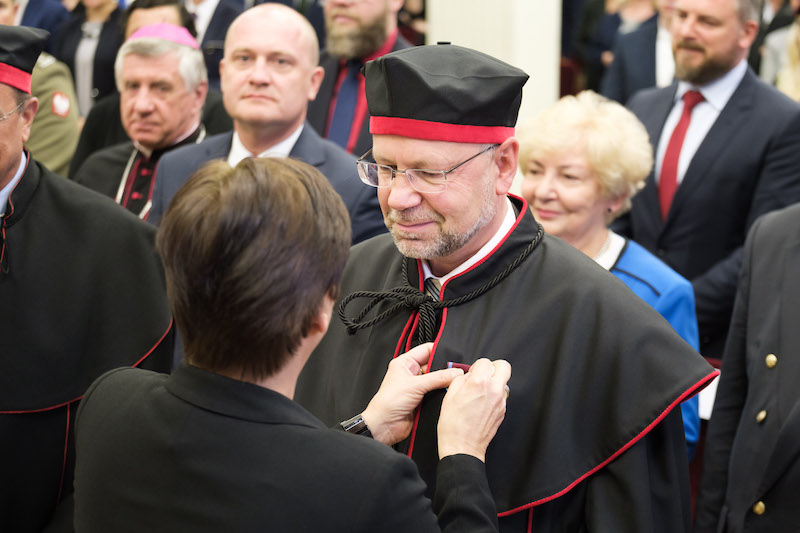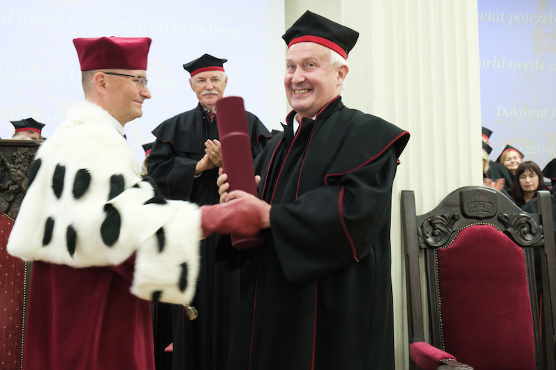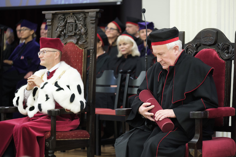 Na koniec wręczono doktorat honoris caus prof. Janowi Lubińskiemu, kierowniki Katedry Onkologii i Zakładu Genetyki i Patomorfologii.