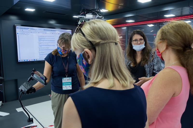 – Pojazd jest wyposażony w nowoczesne technologie. Mamy różnego rodzaju roboty, aplikacje, flipchart interaktywny, tablicę multimedialną oraz sprzęt rozszerzonej rzeczywistości. Ze względu na ograniczenia sanitarne dzisiaj nie mamy możliwości przedstawienia wszystkich robotów. Celem tego podróżowania po całej Polsce jest inspirowanie nauczycieli do tego, aby stosowali u siebie na lekcjach nowe technologie. Prezentację kierujemy głównie do wykładowców, ale też przyjmujemy grupy uczniów. Są cztery sesje warsztatowe, na które zapraszamy nauczycieli ze Szczecina – poinformowała „Kurier” Wioletta Matusiak, trener warsztatów.