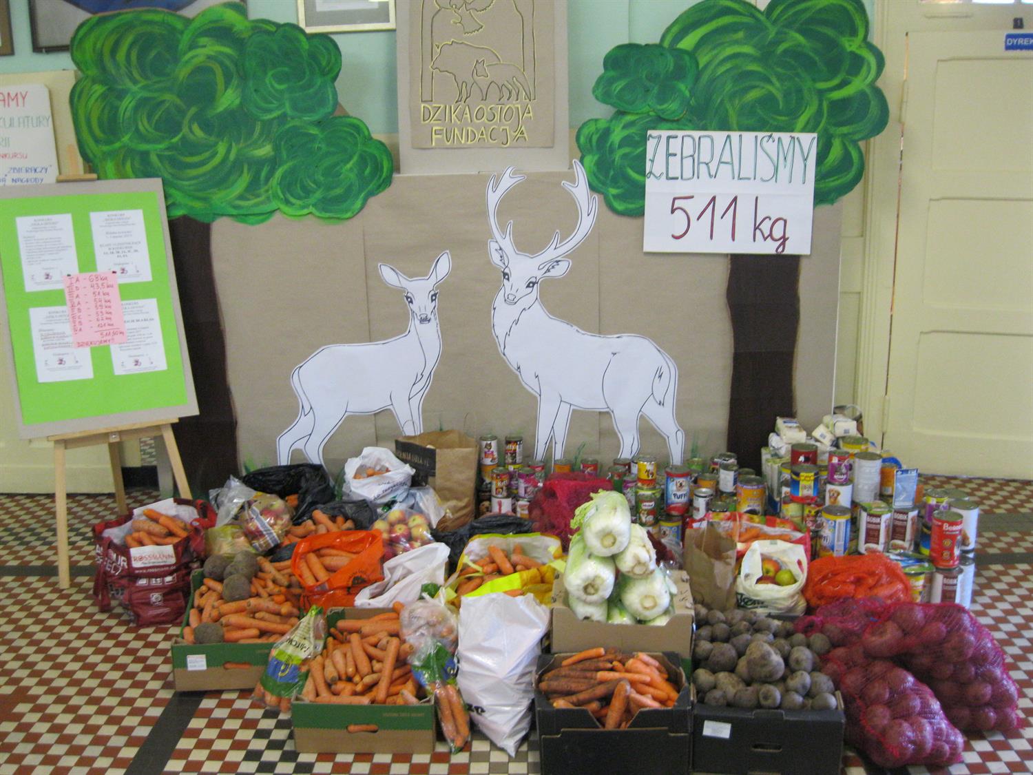 Jabłka, marchew, buraki, kapusta pekińska, puszki z karmą dla psów, płatki owsiane – oto, co zebrano w szczecińskiej Szkole Podstawowej nr 1 dla zwierząt przebywających na rehabilitacji w ośrodku Fundacji Na Rzecz Zwierząt „Dzika Ostoja” w Wielgowie. Zebrano – uwaga, uwaga! – 511 kilogramów karmy. Z ośmiu klas, które zgłosiły swój udział w akcji, pierwsze miejsce zdobyła 4a (uczniowie zgromadzili aż 121 kg karmy), drugie – kl. 1a (68 kg), a trzecie – kl. 1b (63 kg). Akcję zorganizowało Stowarzyszenie Jedyneczka i świetlica szkolna.