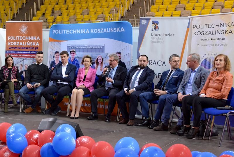 Na zdięciu: Środkowopomorskie Targi Pracy, organizowane przez Politechnikę Koszalińską, to miejsce spotkań przedstawicieli nowej Rady Uczelni. Trzeci z prawej to Piotr Huzar, szef nowego gremium.