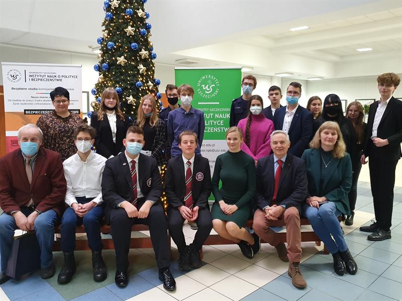 Michał Barszczak z XIII LO w Szczecinie (trzeci od lewej) wygrał eliminacje Olimpiady Wiedzy o Bezpieczeństwie i Obronności, której regionalny etap zorganizował Instytut Nauk o Polityce i Bezpieczeństwie Uniwersytetu Szczecińskiego. Kajetan Dudko z XII LO w Szczecinie (czwarty z lewej) zajął drugie miejsce a Alex Pawelczyk z I LO im. Stanisława Dubois w Koszalinie - trzecie (drugi z lewej). Olimpiada to inicjatywa Uniwersytetu Warszawskiego, Uniwersytetu Kardynała Stefana Wyszyńskiego w Warszawie oraz Akademii Sztuki Wojennej w Warszawie.