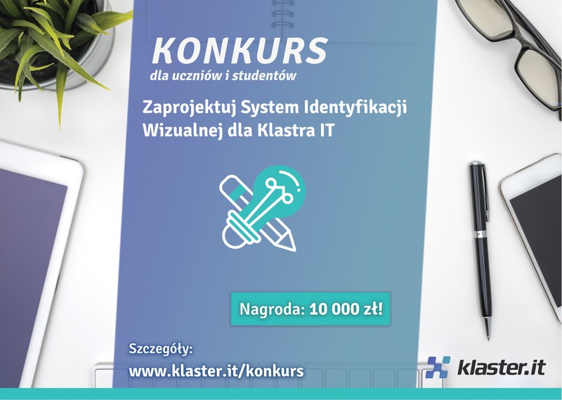 Stowarzyszenie Klaster IT ogłosiło konkurs dla studentów uczelni i uczniów szkół średnich z województwa zachodniopomorskiego na zaprojektowanie systemu identyfikacji wizualnej. Nagroda to 1 500 zł plus płatne zlecenie przygotowania materiałów promocyjnych o wartości 8 500 zł.