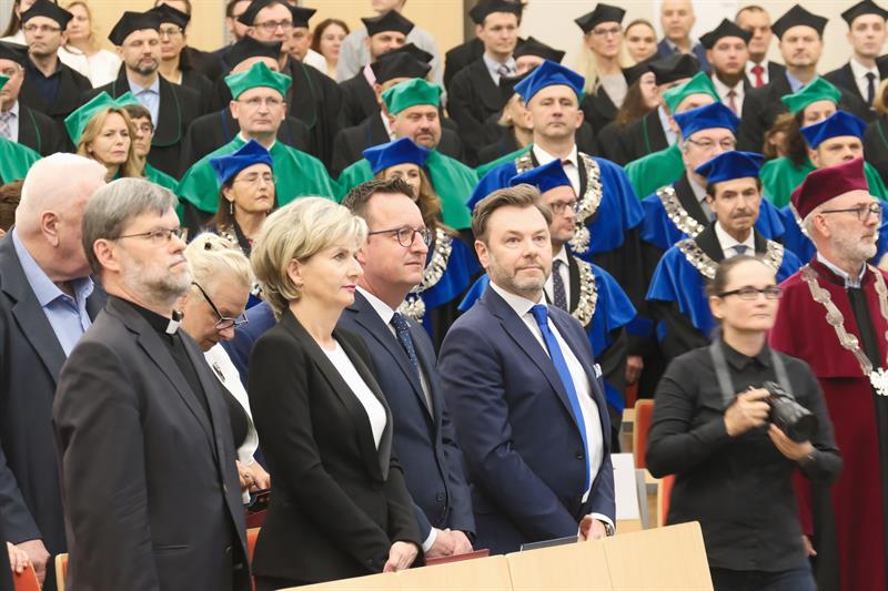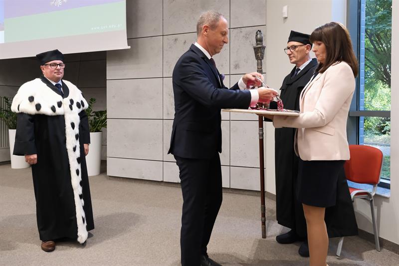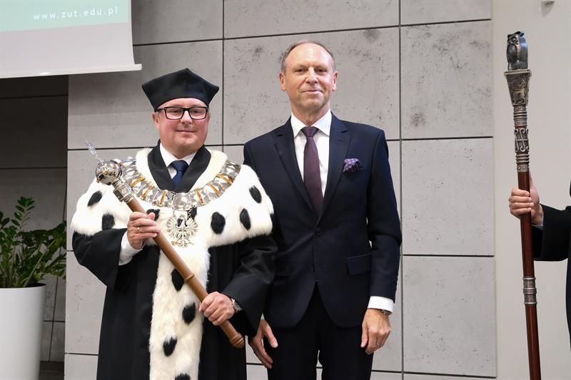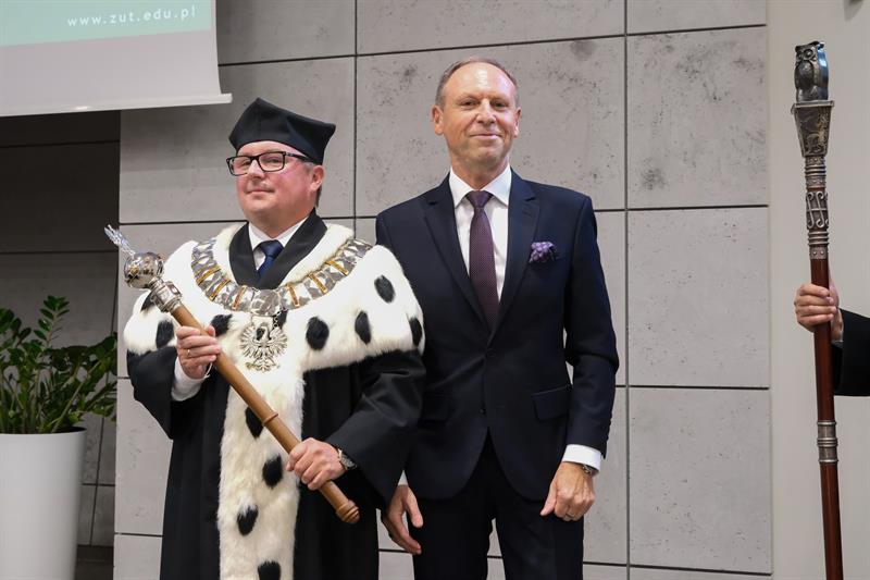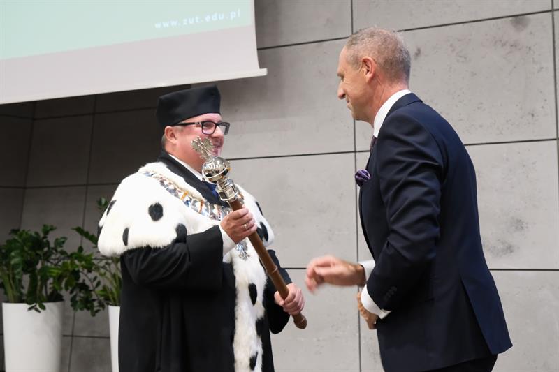 W piątek na Wydziale Elektrycznym Zachodniopomorskiego Uniwersytetu Technologicznego w Szczecinie rozpoczął się nowy rok akademicki - a ustępujący rektor prof. Jacek Wróbel (z lewej) przekazał władze nowemu rektorowi, prof. Arkadiuszowi Termanowi. Podczas tegorocznego naboru na ZUT najwięcej kandydatów zdawało na informatykę, architekturę, automatykę i robotykę. W poniedziałek inaugurację nowego roku akademickiego organizuje Uniwersytet Szczeciński, we wtorek - Pomorski Uniwersytet Medyczny. Akademia Sztuki startuje w czwartek. ©℗