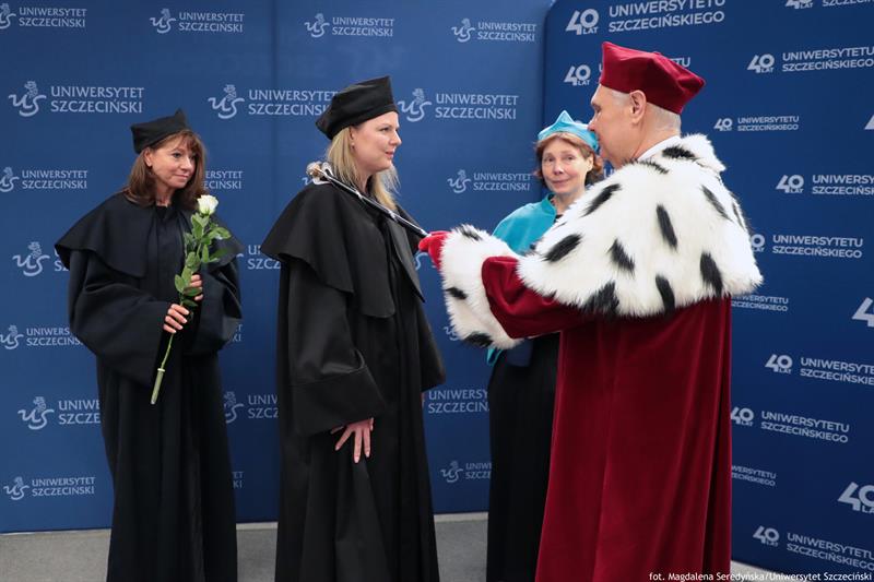 Ta ważna dla Uniwersytetu Szczecińskiego uroczystość odbyła się w Geocentrum – Ośrodku Kompetencji Nauk o Ziemi i Środowisku. W wydarzeniu udział wzięły władze uczelni, dyrektorzy instytutów, promotorzy, rodziny i przyjaciele promowanych osób.
