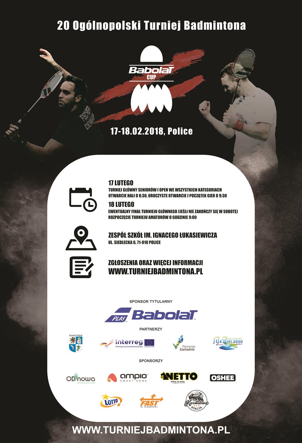 17 i 18 lutego w Policach, w hali sportowej Zespołu Szkół im. Ignacego Łukasiewicza przy ul. Siedleckiej 6 rozgrywany będzie 20. Ogólnopolski Turniej Badmintona Babolat Cup.