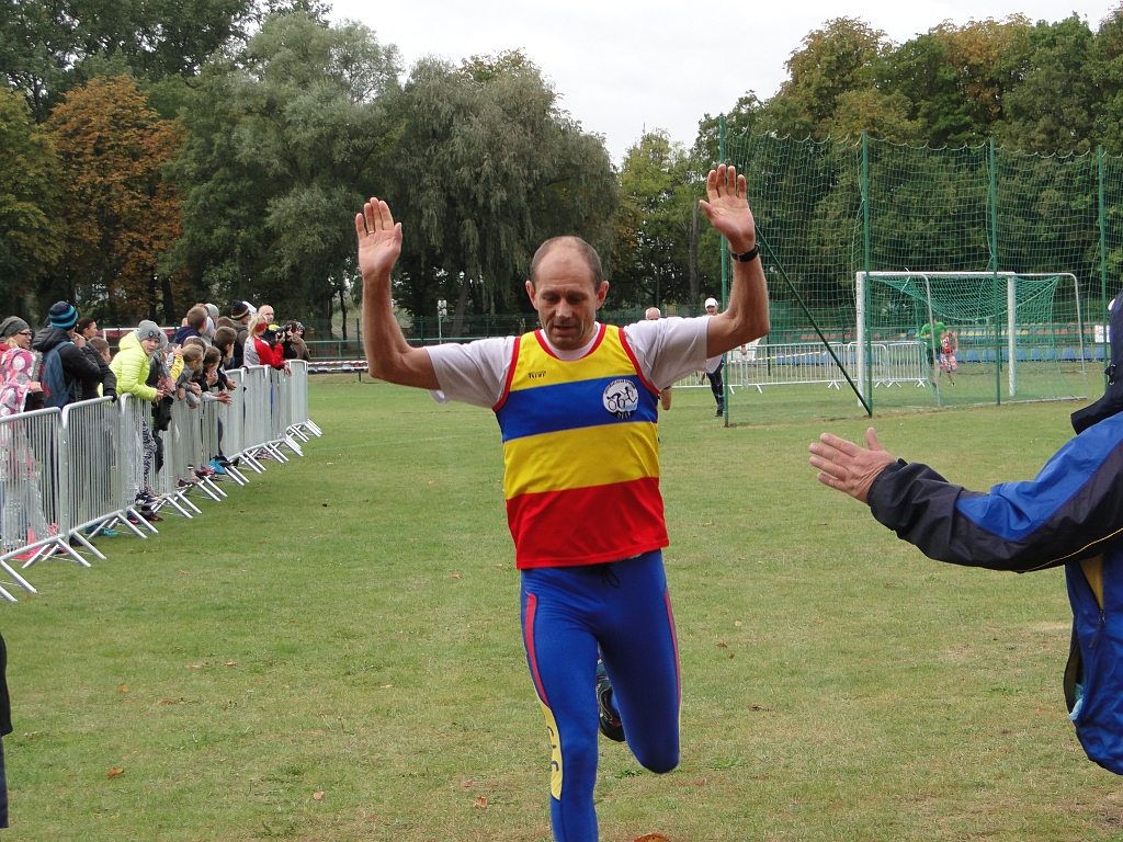 Na zdjęciu Marek Sanecki jako pierwszy wśród panów wbigł na metę