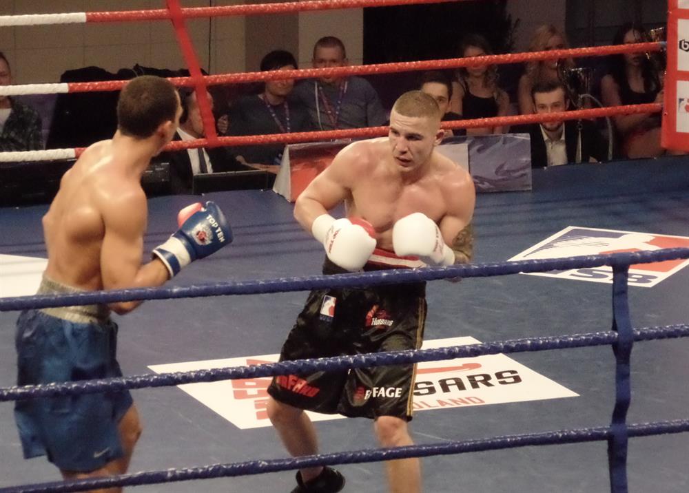 Niesiony dopingiem własnej publiczności szczecinianin dobrze rozpoczął. Tak, jak sobie założył, trzymał rywala na dystans i wyprowadzał pojedyncze ciosy. Starał się tak walczyć przez wszystkie pięć rund, jednak z każdą kolejną Rosjanin coraz częściej skracał dystans i zadawał serie ciosów, za które otrzymywał punkty od sekundantów.