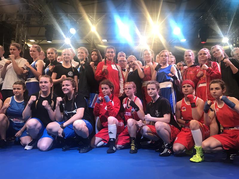 Na zdjęciu: wszystkie uczestniczki pojedynków o złote medale na konińskim ringu przed pierwszą finałową walką.