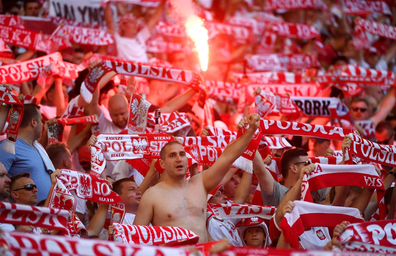 Na zdjęciu: polscy kibice podczas meczu grupy C piłkarskich mistrzostw Europy z Ukrainą w Marsylii