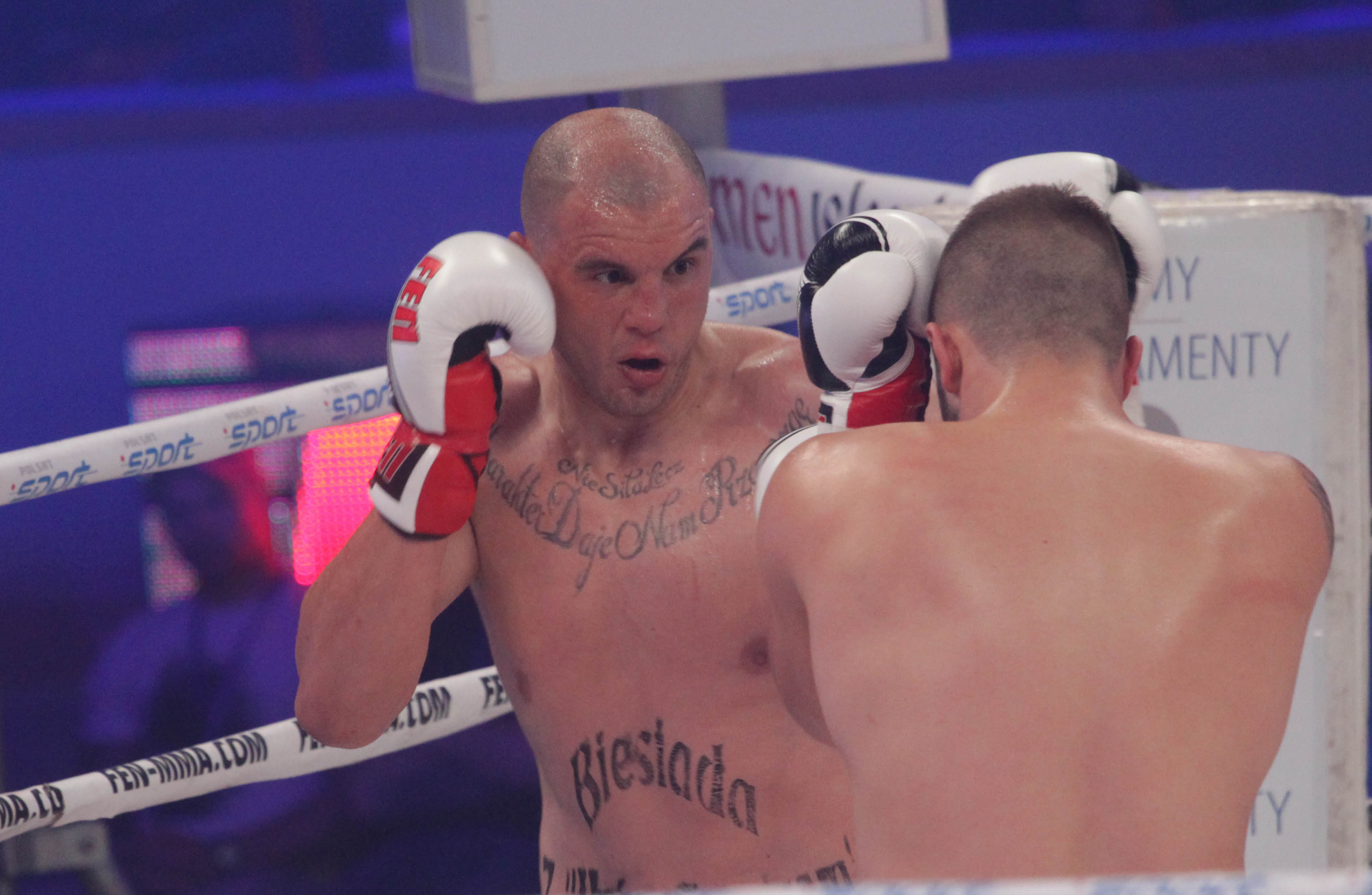 Na zdjęciu: Tomasz Sarara, który w walce wieczoru pokonał Andre Schmelinga.