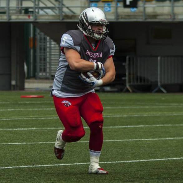 - W oficjalnej nomenklaturze futbolu amerykańskiego nazywa się ją running back, ale po polsku mówimy, że jestem po prostu biegaczem. To taka pozycja na boisku za rozgrywającym, a moim zadaniem, po złapaniu piłki lub dostaniu jej do ręki, jest przedarcie się z nią przez rywali i przebiegnięcie co najmniej kilku jardów.