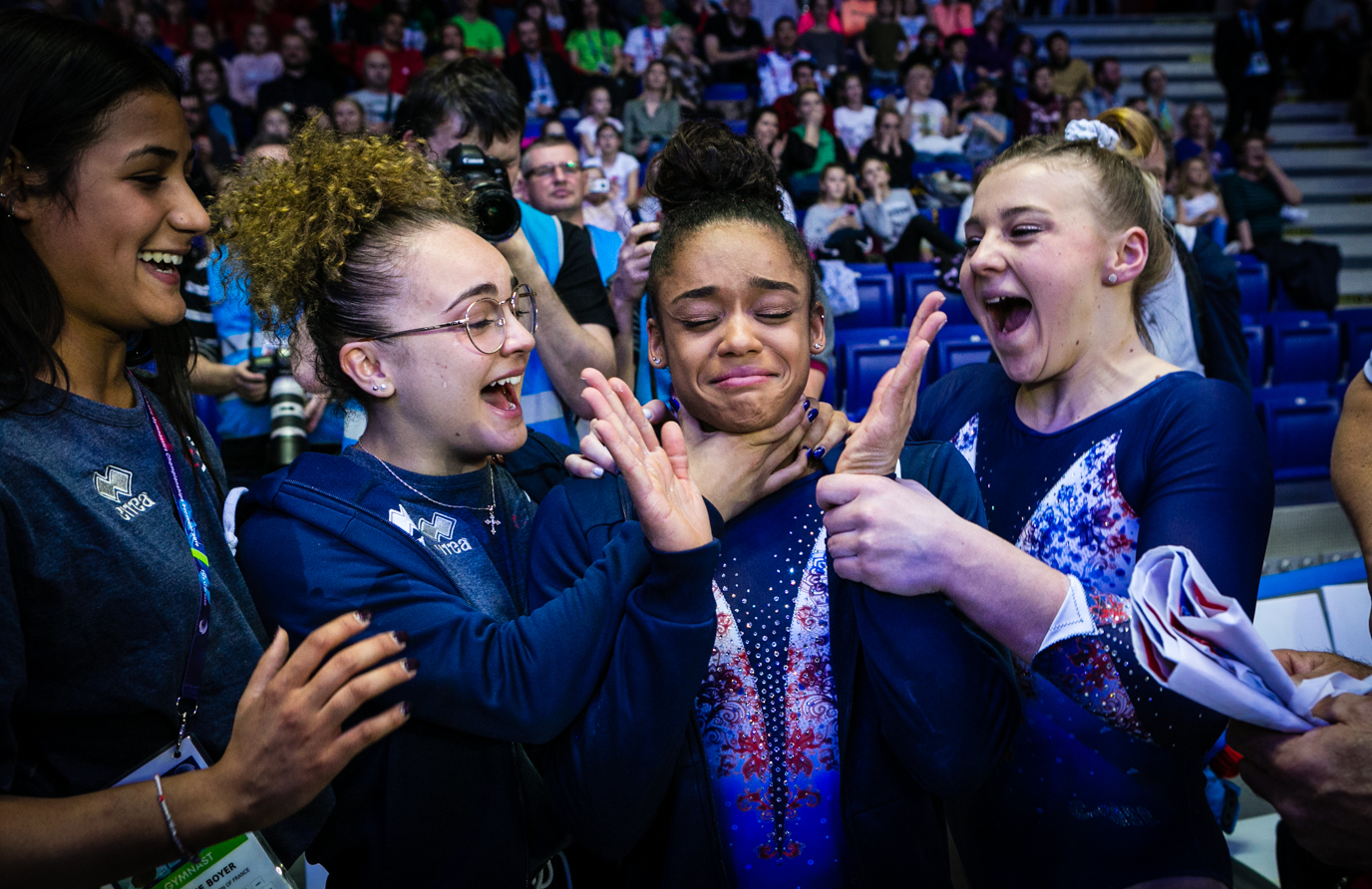 Niesamowity przebieg miał finał wieloboju kobiet, w którym o tytuł mistrzyni Europy rywalizowały 24 zawodniczki. Po drugiej rotacji prowadziła złota medalistka z Glasgow (2018) Rosjanka Angelina Melnikova, po trzeciej Brytyjka Elissa Downie, a ostatecznie zwyciężyła 19-latka z Francji, z łączną notą 55.433 pkt.