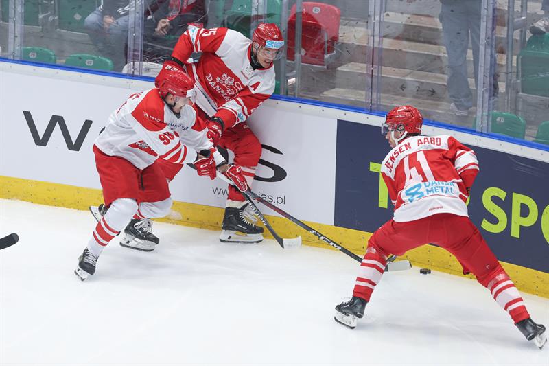 W meczu z Duńczykami nasz selekcjoner postawił na bramkarza Davida Zabolotnego, który zagrał w efektownej masce hokejowej z wizerunkiem orła i dużym napisem „Polska”. Golkiper prezentował się dobrze, broniąc sporo trudnych strzałów. Najpierw skapitulował pod koniec drugiej tercji. W tej odsłonie gry Polacy oddali sporo strzałów, uderzali Krzysztof Maciaś, Krystian Dziubiński, czy Dominik Paś, ale bramka nie padła. Trzecia tercja rozpoczęła się od drugiej bramki dla gości i błyskawicznej odpowiedzi Biało-Czerwonych, a gola strzelił Bartosz Fraszko. Duńczycy, którzy od 2003 roku, grają w Elicie, ostatecznie wygrali 3:1. W dodatkowo rozegranych karnych było 3:2 dla naszego zespołu. Dla Polaków karne strzelili: Krystian Dziubiński i Fraszko oraz Alan Łyszczarczyk. Po meczu selekcjoner R. Kalaber ogłosił 25-osobową kadrę, która pojedzie do Ostrawy na MŚ. (mij)