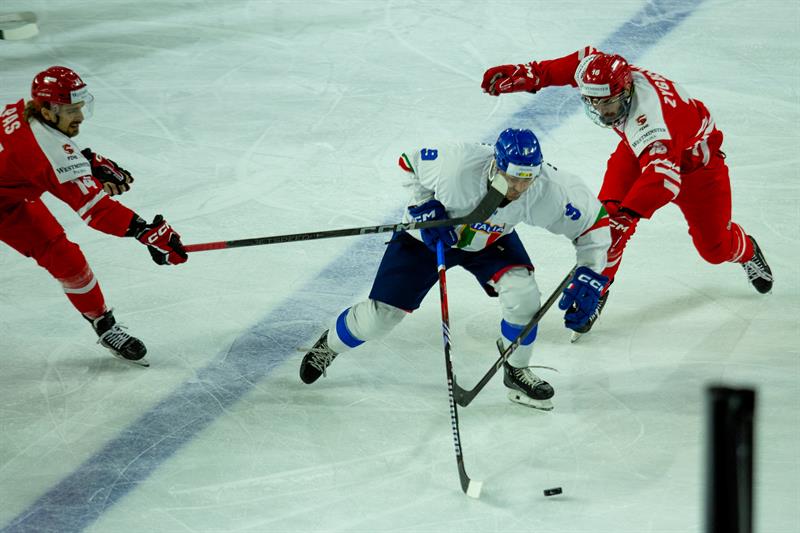 Pierwsza tercja zakończyła się wynikiem 1:0. Po szybkim ataku Paweł Zygmunt wyłożył krążek Dominikowi Pasiowi, który wpakował go do pustej bramki. Później jednak przeważali rywale i to oni zdobywali kolejne bramki. W 23. minucie Włosi wyrównali, a autorem trafienia był Daniel Mantenuto. W tej odsłonie gry rywale grając w przewadze zdobyli jeszcze bramkę na 2:1. Bramkarz Tomas Fucik miał sporo roboty i skapitulował również dwukrotnie w trzeciej tercji. Czwarty gol padł po rzucie karnym. Ostatecznie Biało-Czerwoni, który rozpoczęli turniej od dwóch zwycięstw, przegrali 1:4, ale wciąż mają szansę na awans do elity.