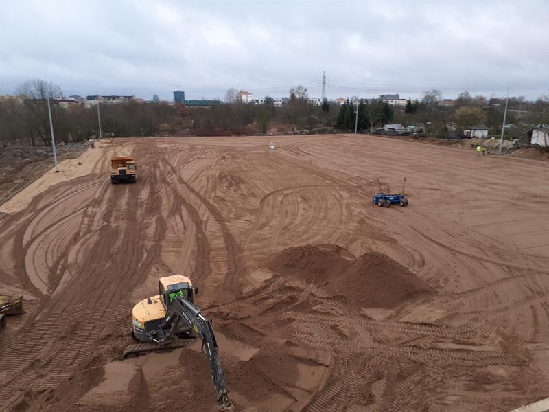 - Inwestycja realizowana na zlecenie MOSRiR-u przy ulicy Bandurskiego przebiega zgodnie z planem - poinformował nas D. Sadowski. - Pełnowymiarowe boisko trawiaste jest już prawie gotowe i wykładana jest ostatnia warstwa wegetacyjna, na której pojawi się trawa. Oznacza to, że na tym obszarze wszelkie prace związane z instalacją złączy i drenażem zostały już zakończone. Natomiast budynek szatniowo-socjalny znajduje się już w stanie surowym zamkniętym, a zatem pozostało tynkowanie ścian wewnętrznych. W dalszej kolejności realizowane będą prace związane z pozostałymi boiskami, czyli pełnowymiarowym ze sztuczną nawierzchnią oraz małym trawiastym boisku treningowe. W kolejnych planach jest zagospodarowanie terenu i wykonanie parkingu. ©℗