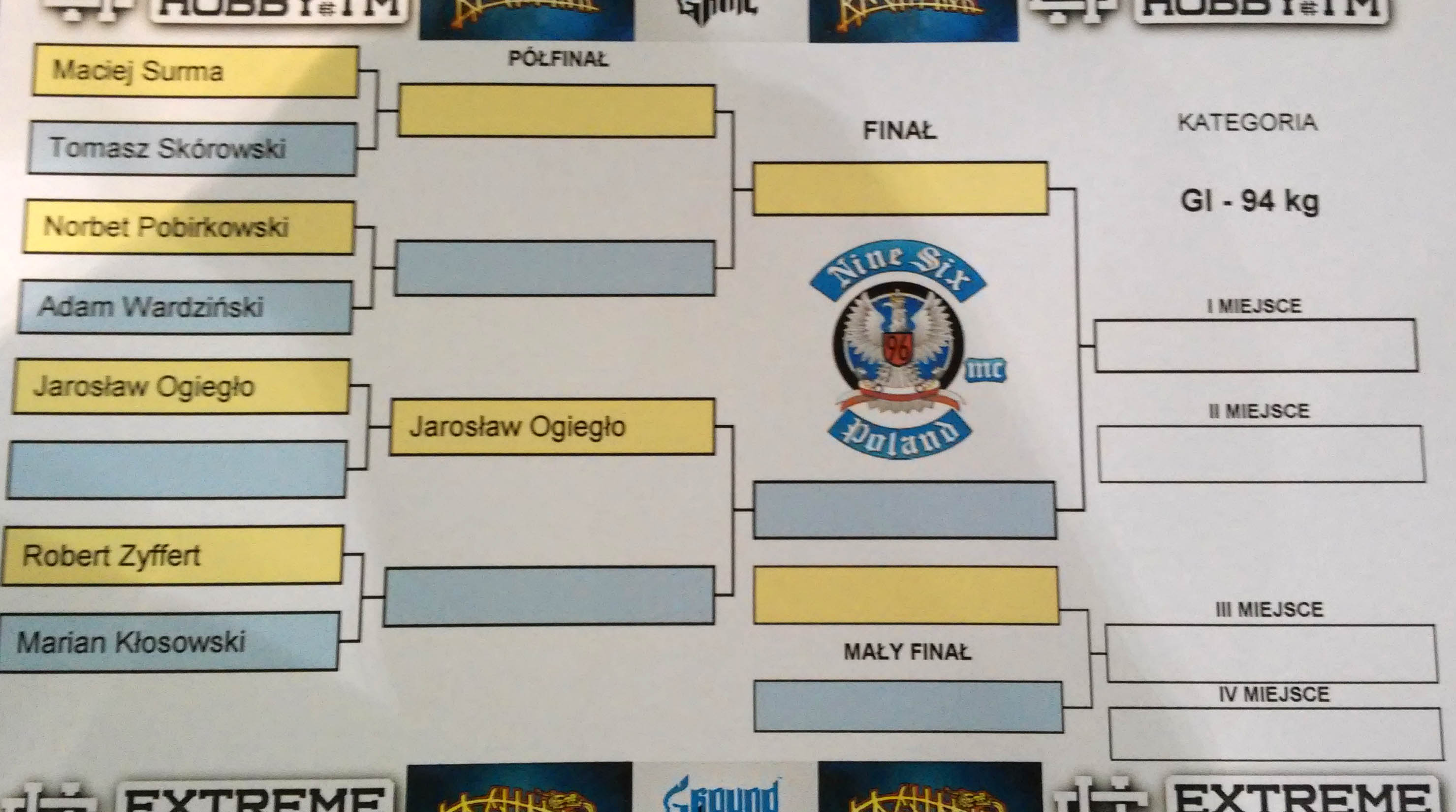 Jarosław Ogiegło - wolny los wobec 7 zawodników w kategorii, w półfinale spotka się z Zyffertem lub Kłosowskim