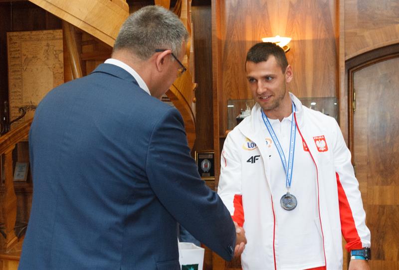 Norbert Kuczyński z Wiskordu Szczecin zdobył w weekend srebrny medal kajakarskich mistrzostw Europy w k-4 na 500 metrów. To największy sukces szczecińskiego Wiskordu od 15 lat i drugi krążek mistrzostw Europy w kolekcji Kuczyńskiego. We wtorek kajakarz odebrał w Urzędzie Miejskim gratulacje od zastępcy prezydenta Szczecina Krzysztofa Soski.