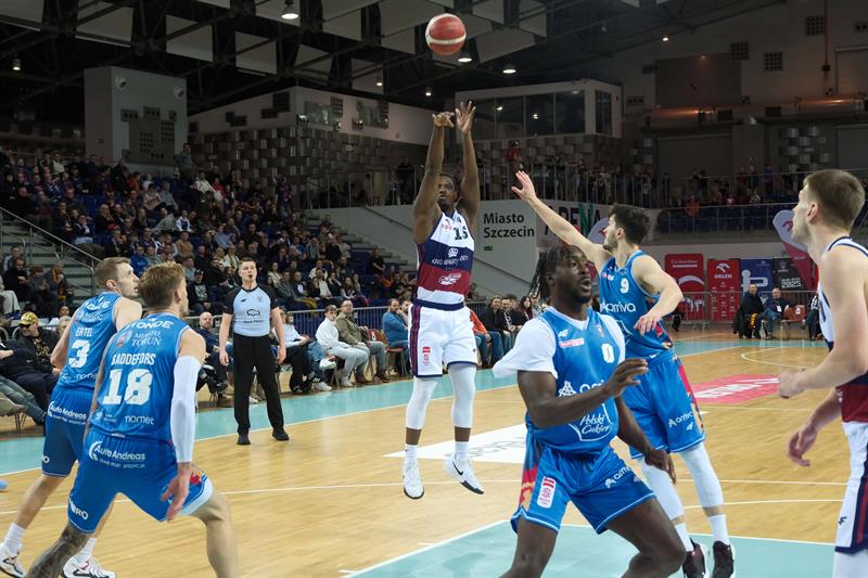 King wykorzystał 15 z 24 oddanych rzutów za trzy punkty i miał bardzo dobrą 65-procentową skuteczności w rzutach z gry. Aż siedmiu zawodników gospodarzy przekroczyło barierę dziesięciu zdobytych punktów, a najskuteczniejsi byli Polacy, Wójcik z Kostrzewskim. Udany debiut w zespole ze Szczecina zaliczył nowy serbski rozgrywający Jovan Novak, który otarł się o double-double (12 punktów, 9 asyst) i przebywał na parkiecie aż 32 minuty, czyli najwięcej spośród wszystkich zawodników Kinga. Gościom nie pomogło 17 punktów Viktora Gaddeforsa, bo zawiódł jeden z toruńskich liderów Divine Myles, zdobywając tylko 4 punkty.