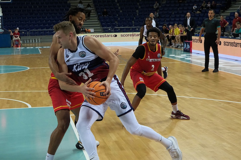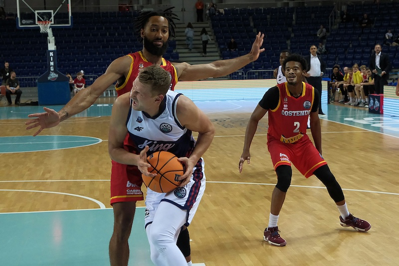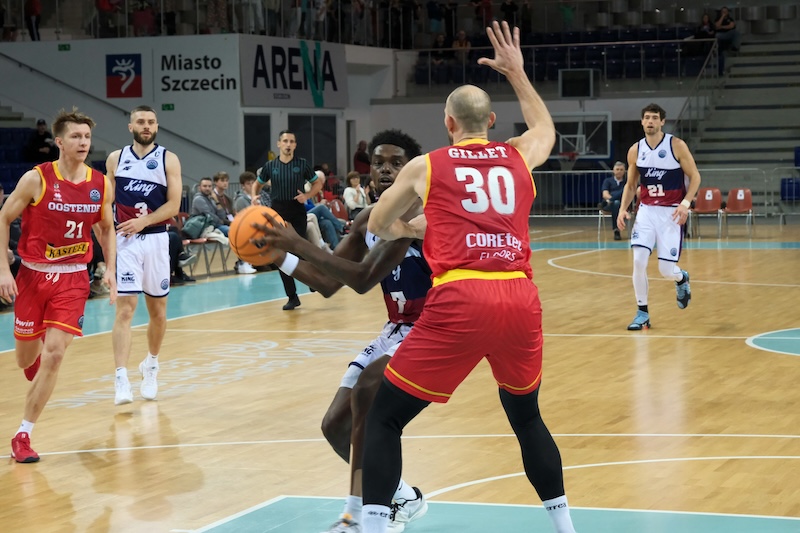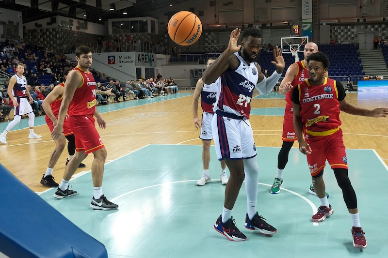 Na zakończenie pierwszej połowy rozgrywek grupowych Ligi Mistrzów FIBA koszykarze Kinga Szczecin przegrali na własnym parkiecie z belgijskim Filou Oostende 73:84 (17:18, 23:24, 12:19, 21:23).
