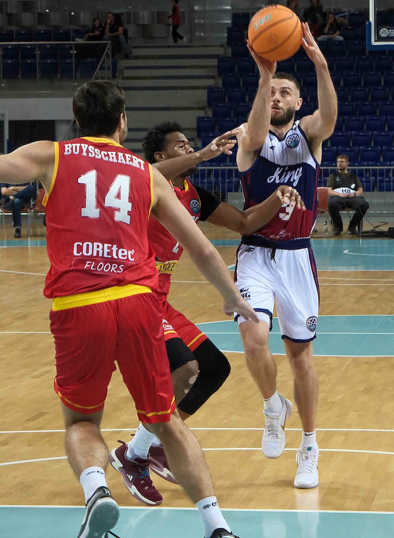 Szczecinianie do meczu przystąpili osłabieni brakiem kontuzjowanych Woodarda i Żołnierowicza, a na ławce rezerwowych po raz pierwszy w karierze zasiadła 16-letni Antoni Majcherek. Szczecinianie dobrze weszli w mecz i w I kwarcie prowadzili nawet 7 punktami, ale później inicjatywa należała już do gości z Belgii. Już I kwartę zakończyli prowadzeniem, a w II odsłonie również byli lepsi. King rozbudziła nadzieje kibiców w III kwarcie. Wówczas ponownie wyszedł na prowadzenie, ale kolejne błędy pozwoliły rywalom uzyskać wyraźną przewagę. Goście odskoczyli na ponad 10 punktów i już nie pozwolili sobie wydrzeć zwycięstwa. Kingowi w odwróceniu losów meczu nie pomogła przewaga na tablicach i ponad 20 zbiórek w ataku. Zawodziła skuteczność i rzuty z trzy punkty.