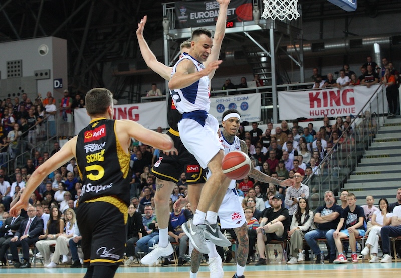 W przerwie w połowie meczu Udeze intensywnie trenował rzuty osobiste. Przydały się już w jednej z pierwszych akcji, gdy faulowany center trafił oba wolne. Wcześniej popisał się dwoma skutecznymi akcjami w obronie. W 25 minucie Cuthbertson najpierw doprowadził do wyrównania, a chwilę później celną "trójką" wyprowadził swoją ekipę na pierwsze w tym meczu prowadzenie. Przewaga Kinga nie trwała długo, a seria "trójek" Trefla dała gościom na koniec tej kwarty prowadzenie 65:74.
