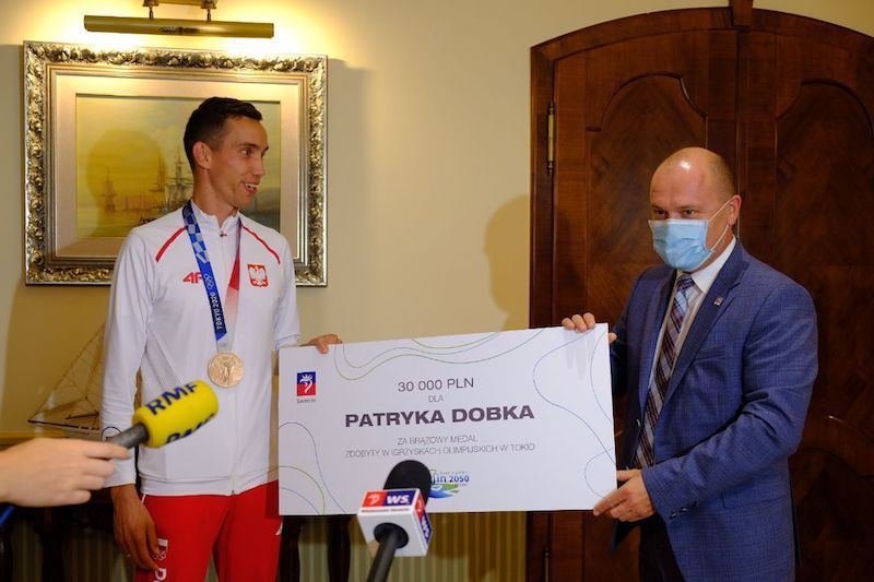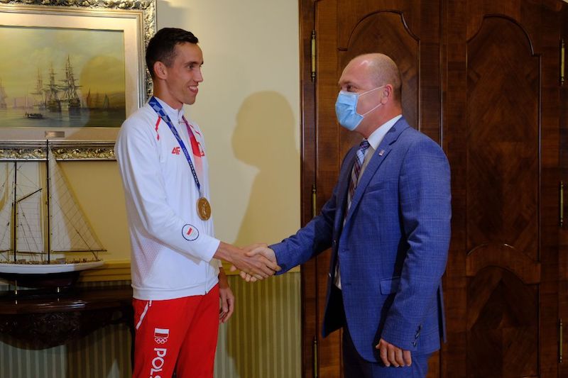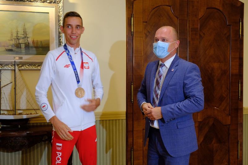 Brązowy medalista igrzysk olimpijskich Tokio 2020, Zawodnik Miejskiego Klubu Lekkoatletycznego Szczecin Patryk Dobek, wkrótce po powrocie z Japonii spotkał się z prezydentem naszego miasta Piotrem Krzystkiem, a gmach Urzędu Miasta odwiedził we wtorek (10 sierpnia) wczesnym popołudniem.
