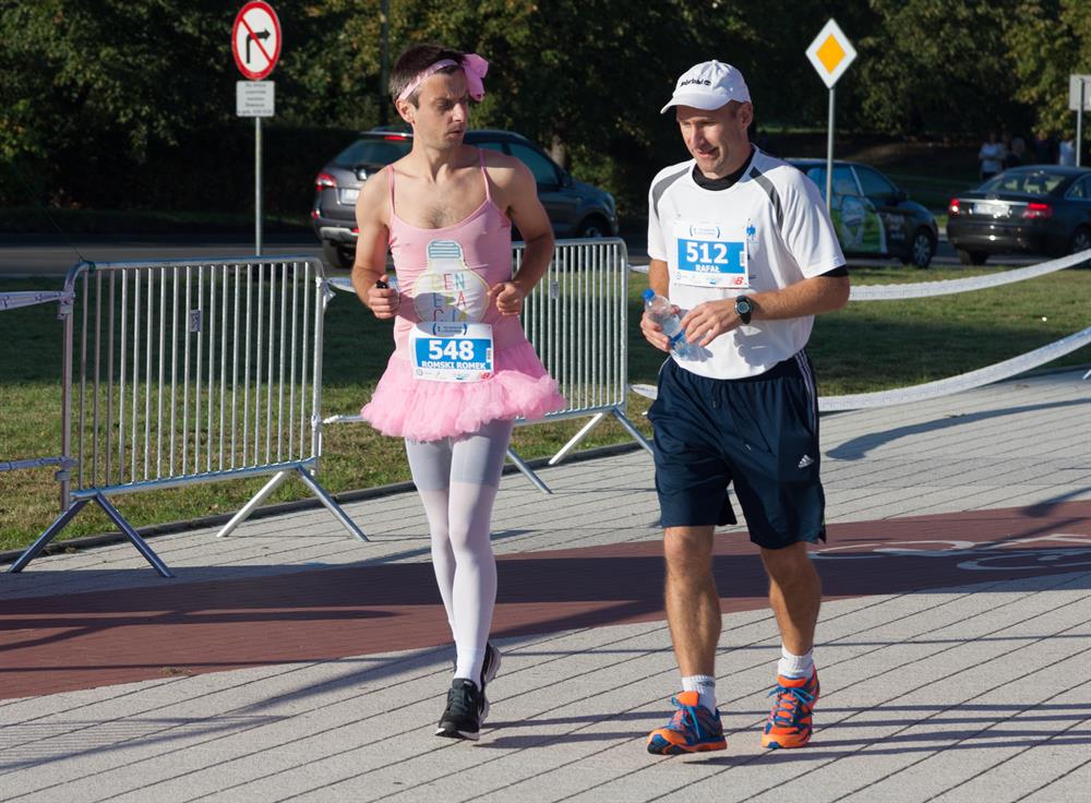 Wśród biegaczy przeważały osoby dość poważnie traktujące wyzwanie, ale byli też tacy, których strój i zachowanie absolutnie nie zapowiadały poważnej sportowej rywalizacji.