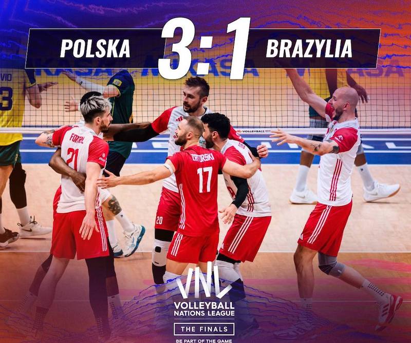 Polscy siatkarze, obrońcy tytułu, wygrali z Brazylią 3:1 (18:25, 25:23, 25:22, 25:16) w ćwierćfinale Ligi Narodów w Łodzi i piąty raz z rzędu awansowali do strefy medalowej rozgrywek. Rywala biało-czerwonych w półfinale wyłoni piątkowe starcie Włoch z Francją.