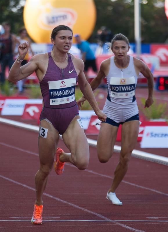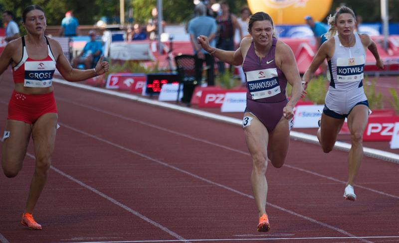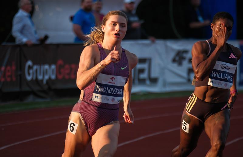 Jamajczyk Kardian Goldson wygrał bieg na 100 m czasem 10,23, a Bogaczyński uzyskał 10. wynik - 10,57. Najszybszą kobietą okazała się Jordean Williams z Jamajki (11,43), a piąta Cimanouska była wolniejsza o 0,11 s.