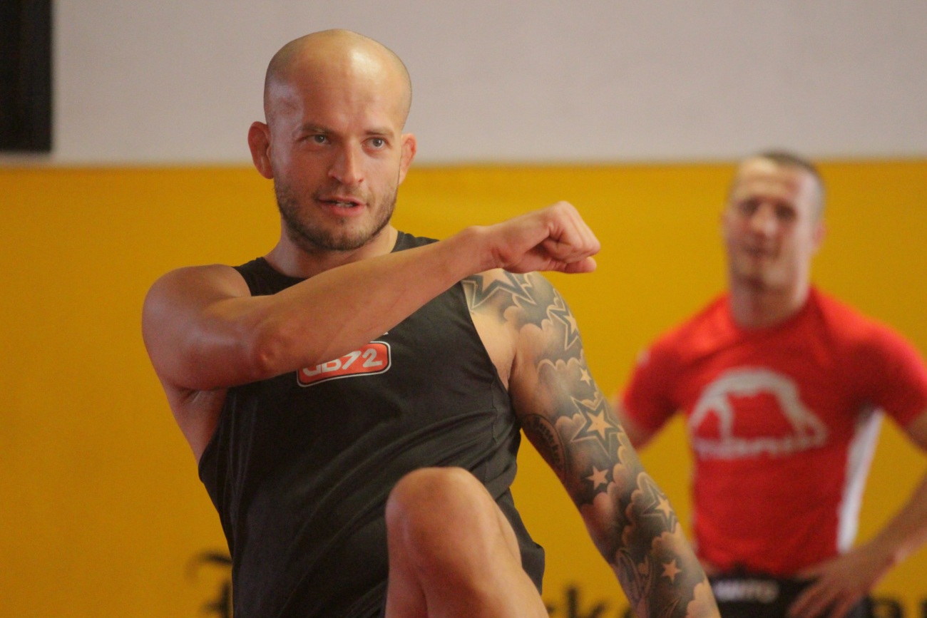 Na zdjęciu: Maciej Jewtuszko podczas treningu w sali Berserkers Team Szczecin.
