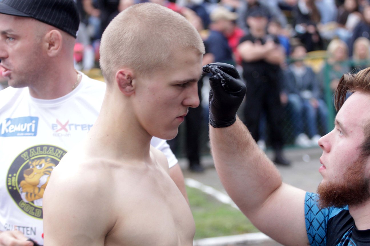 Piotr Bodnar z Husaria Fight Team zdołał wytrzymać z nacierającym Danielem „Fryzjerem” Trautem z Energy Gold Team Police jedną rundę. Po wymianie w stójce walka zeszła do parteru, gdzie fighter z Husarii ratował się przytrzymując rywala, a ten miał problem, żeby zepchnąć łokieć rywala z głowy. W drugiej odsłonie Bodnar miał zbyt mało siły, żeby przeciwstawić się atakom, oddał pole i sędzia przerwał walkę po serii ciosów, które Fryzjer zadał rywalowi w parterze.
