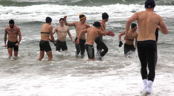 Zobacz piłkarzy Pogoni Szczecin kąpiących się w Bałtyku w środku zimy: