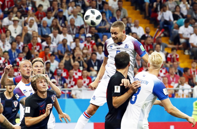 Pierwsze groźne uderzenie oddał w 31. minucie z rzutu wolnego Gylfi Sigurdsson, ale pewnie interweniował rezerwowy bramkarz Lovre Kalinic. W 40. bliski szczęścia był Alfred Finnbogason, ale jego strzał sprzed pola karnego był minimalnie niecelny. Z tej samej pozycji w doliczonym czasie uderzał Aron Gunnarsson, ale znów obronił Kalinic.
