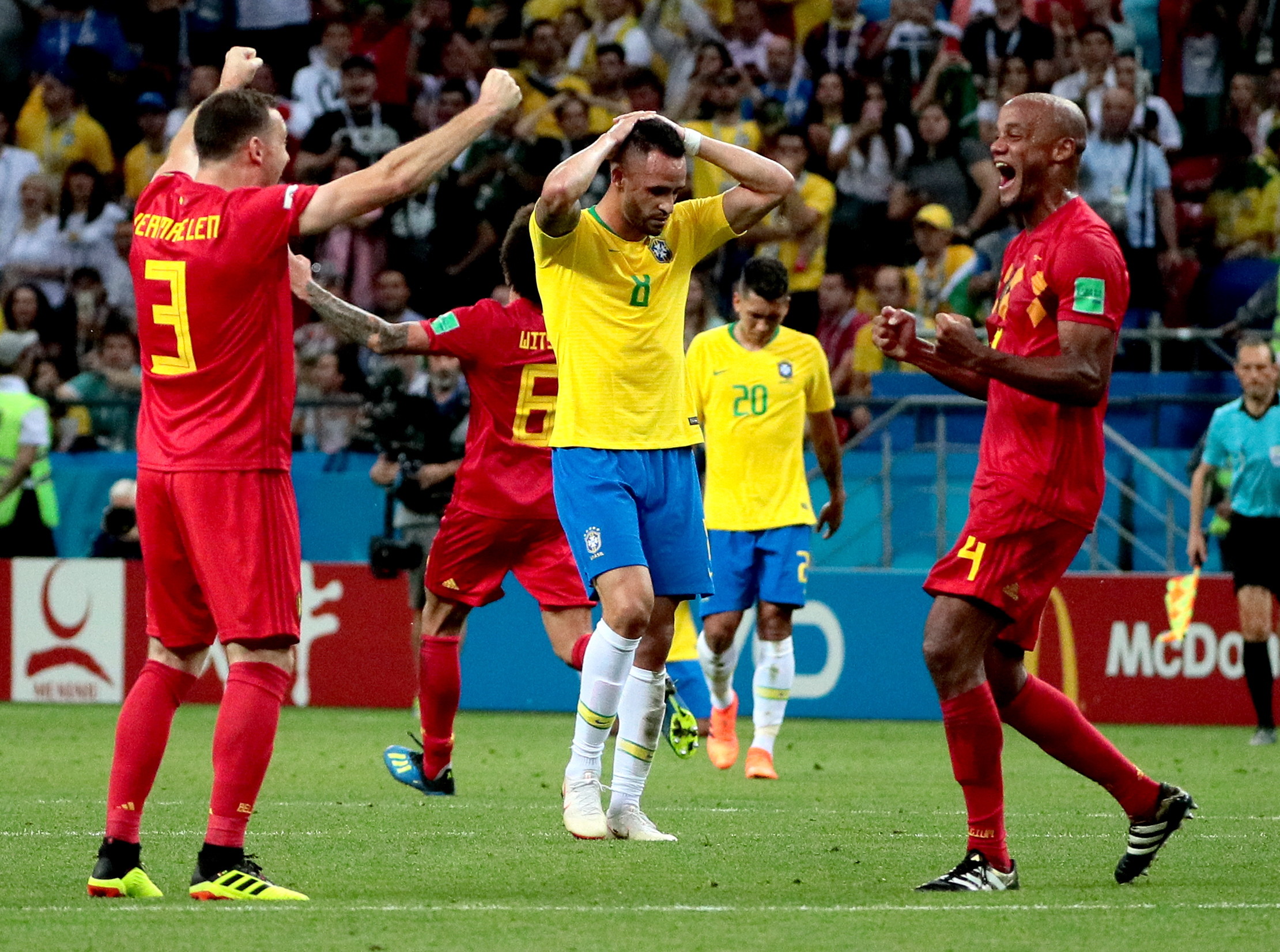 Belgia pokonała w ćwierćfinałowym meczu piłkarskich mistrzostw świata w piłce nożnej drużynę Brazylii 2:1 (2:0) po golach Fernandinho (13, samobójcza) i De Bruyne (31) dla Belgii, oraz Augusto (76) dla Brazylii.