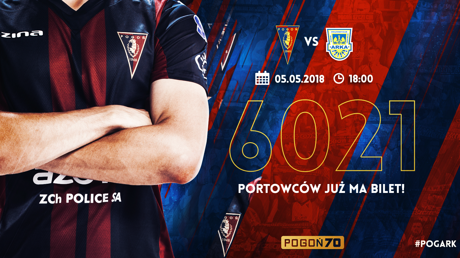 Na 35 godzin przed rozpoczęciem meczu Pogoń - Arka liczba uprawnionych do wejścia na stadion zwiększyła się do 6021 kibiców (początek meczu w sobotę o g. 18).