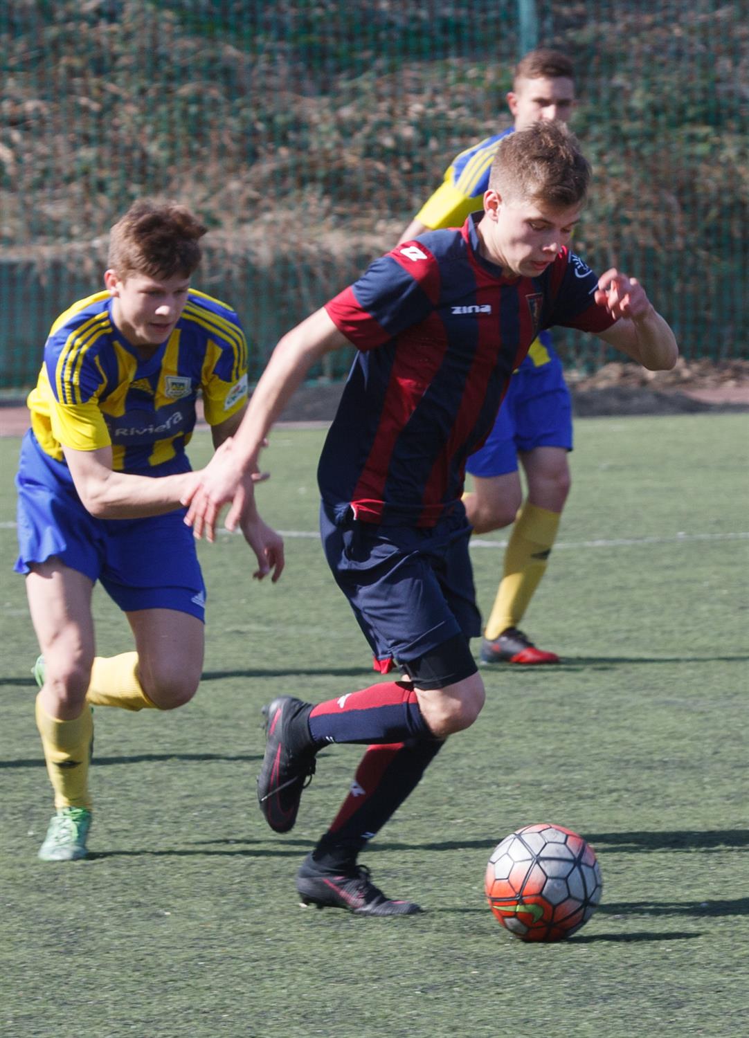 Pierwsza połowa była wyrównana. Szczecinianie dotrzymywali kroku o rok starszym rywalom. Dwukrotnie próbowali zaskoczyć przeciwnika strzałami z dystansu. Za każdym razem strzelał reprezentacyjny rozgrywający Paweł Jachno. Za pierwszym razem piłka minęła bramkę, za drugim padła łupem bramkarza.