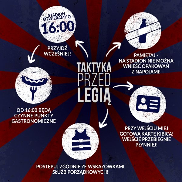 Kibice będą wchodzić na stadion przez blisko 30 kołowrotków (wszystkie na obiekcie będą otwarte). W związku z tym, że każdy ma określoną przepustowość, klub namawia fanów, by na stadion przybywali odpowiednio wcześniej.