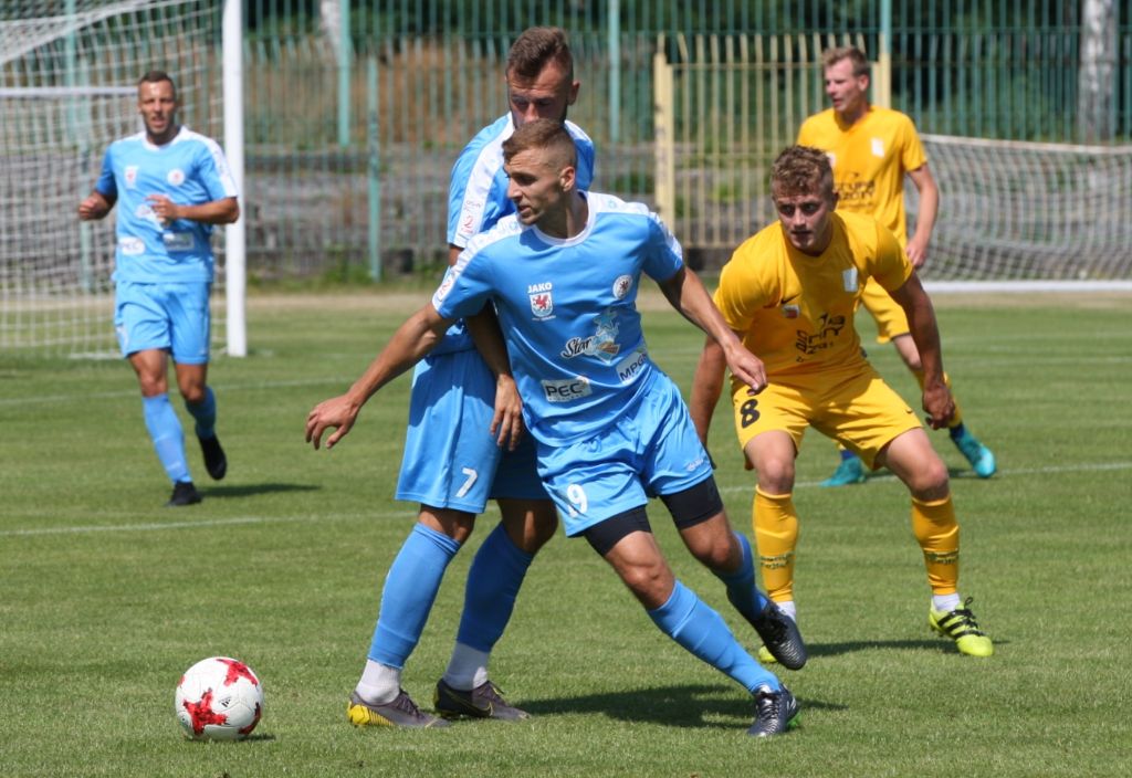 Wszystkie bramki zdobyli nowi piłkarze Błękitnych. Paczuk trafił do II-ligowca po rocznym pobycie w III-ligowej Legionovii, ma za sobą dwa występy w ekstraklasie w barwach Pogoni na przestrzeni czterech lat i jest brązowym medalistą mistrzostw Polski juniorów z roku 2014.