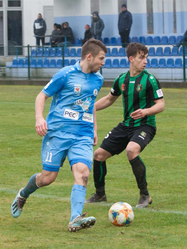 BŁĘKITNI: Tobiasz Weinzettel - Aleksander Theus, Krystian Kujawa, Bartłomiej Mruk, Bartosz Sitkowski - Mateusz Bochnak, Hubert Krawczun, Filip Karmański (70 Oskar Ryk), Dawid Polkowski, Błażej Starzycki - Damian Niedojad (79 Kamil Walków)