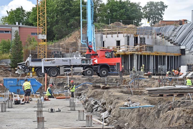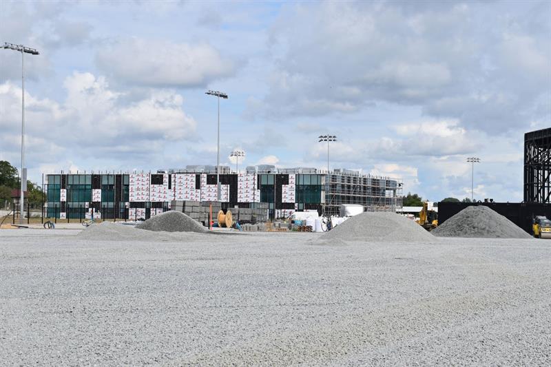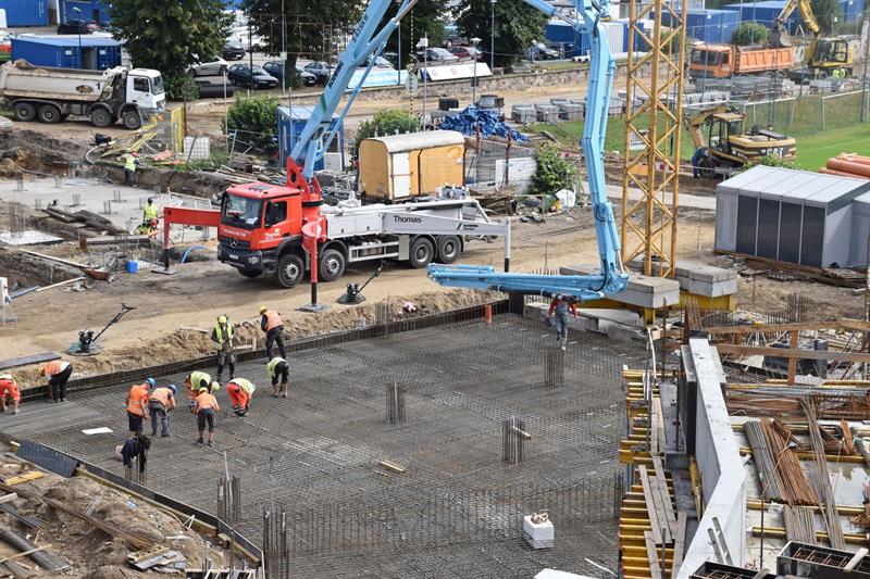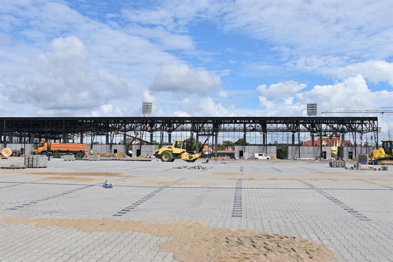 Prace budowlane toczą się także na pozostałej części kompleksu. Budowany jest narożnik trybuny południowo-wschodniej. Trwa budowa stropów a w dalszej kolejności montowane będą belki podaudytoryjne. Na zachodniej montowana jest siatka cięto ciągniona.