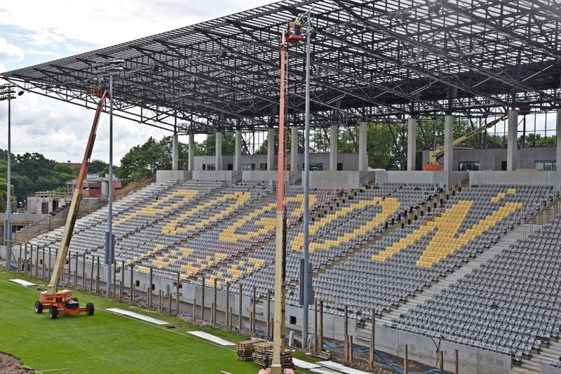 Już od jakiegoś czasu trwają prace przy budowie trybuny wschodniej umiejscowionej za jedną z bramek od strony ulicy Twardowskiego. Trwa również demontaż siedzisk przy bocznym boisku od ulicy Twardowskiego. Wiele wskazuje na to, że pierwsze mecze nowego sezonu dla drużyn młodzieżowych rozgrywane będą jeszcze poza terenem budowanych obecnie obiektów.