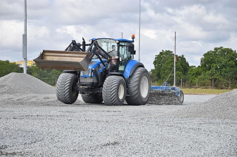 W ramach realizowanych prac związanych z płytą boiska z powierzchni ponad 8 tys. m2 wywiezionych zostanie ponad 4 tys. m3 gruntu. W pierwszej kolejności zostanie zdjęta warstwa humusu, następnie wykonane zostanie korytowanie do głębokości ok. 50cm. W dalszych etapach robót układana będzie geowłóknina, wykonany zostanie drenaż i instalacje do nawadniania murawy.