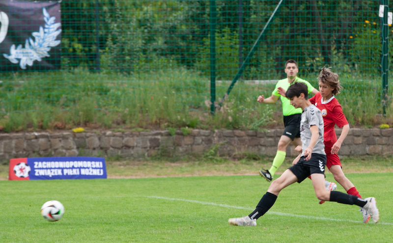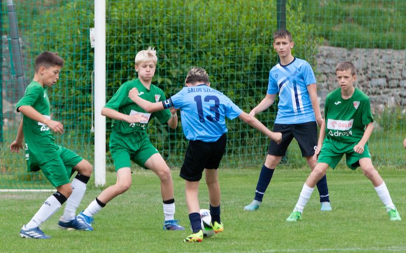 W trzydniowym turnieju występuje 10 drużyn, które w systemie każdy z każdym rozegrają aż 45 spotkań 25-minutowych, a więc jest to praktycznie mała liga z udziałem m.in. czołowych akademii piłkarskich z kilku województw. W inauguracyjnym meczu gospodarze, mający w swym klubie blisko pół tysiąca młodych adeptów futbolu, zmierzyli się z akademią Jaguara Gdańsk, w której trenuje aż 800 zawodników i po golu straconym na trzy minuty przed ostatnim gwizdkiem sędziowskim, mimo szaleńczych ataków w samej końcówce, przegrali 0:1. Po spotkaniu o wypowiedź poprosiliśmy piłkarza SALOS-u Marcela Ziemerta, mieszkającego w podszczecińskich Warzymicach i uczęszczającego do VI klasy Szkoły Podstawowej w Przecławiu, który powiedział:
